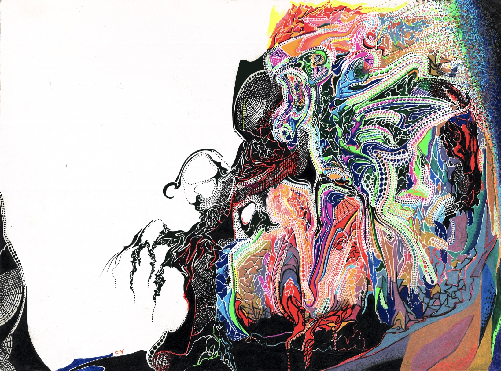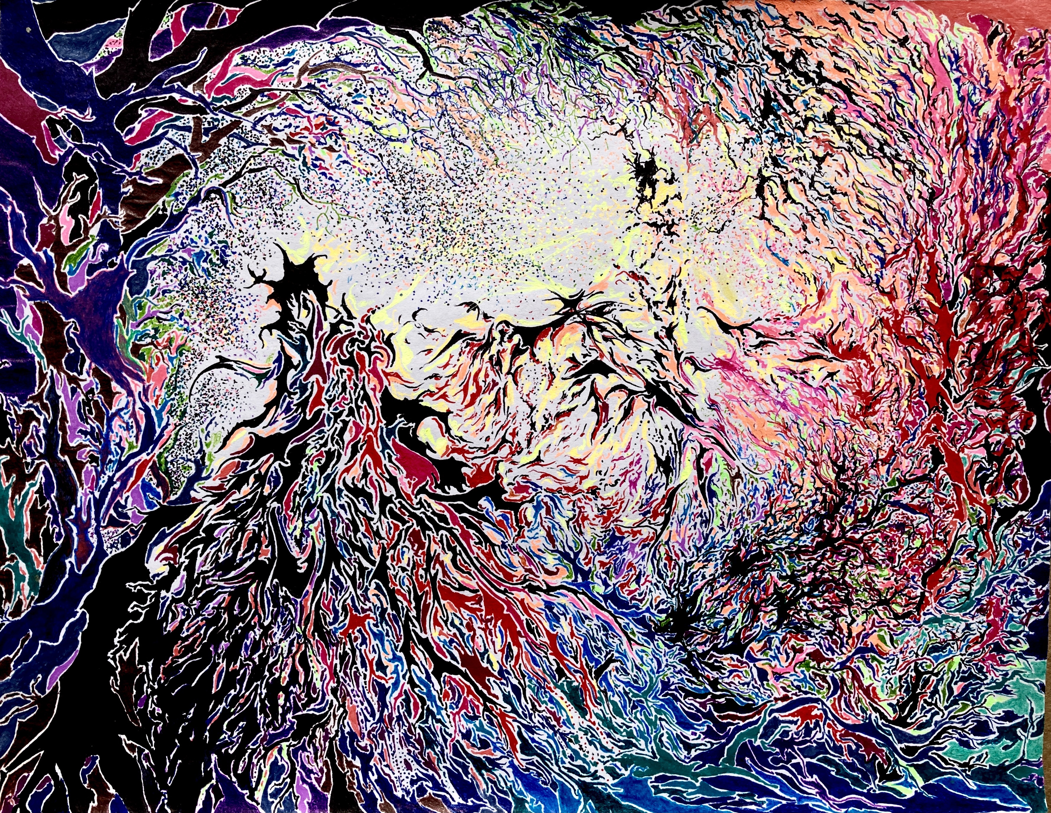 “sauvagine joyeuse”, Middle Period Render- pen and ink on printer stock (2021)“sauvagine joyeuse”, Iconographic Render II- pen and ink on printer stock (2021)“sauvagine joyeuse”, Iconographic Render I- pen and ink on printer stock (2021)“A Horses Breaking Through the Frothing Sea”, Detail I, Clouds (2021)“A Horses Breaking Through the Frothing Sea”, Detail II, Wave (2021)“A Horses Breaking Through the Frothing Sea”, Detail III, Horses (Muted Red)(2021)“Horses Breaking Through the Frothing Sea”, Detail III, Mirrored Horses (Muted Red)(2021)“Bird Study”, Detail I- pen and ink on printer stock (2014)“Bird Study”, Detail II- pen and ink on printer stock (2014)