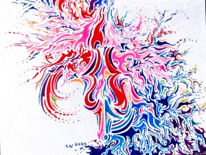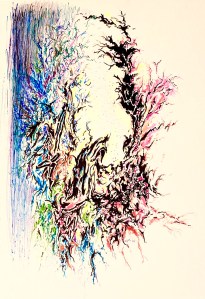 “At Once” (9/14/2024) 10-minute drawing“Daemon with Brittle Bones” (12/21/2022)“Filthy Dancing” (09/11/2022)- Pen and Ink, and Crayon on Music Stave-Lined Card Stock“tes mots sont des mensonges”- pen, pencil, crayon and charcoal on printer stock (2021)“Shopping Person” (12/30/2021)- pen, pencil, pastel, and crayon on drawing paper (ca. 5×9)“Dancer”, Render 2 (2020)- pen and pencil on drawing paper